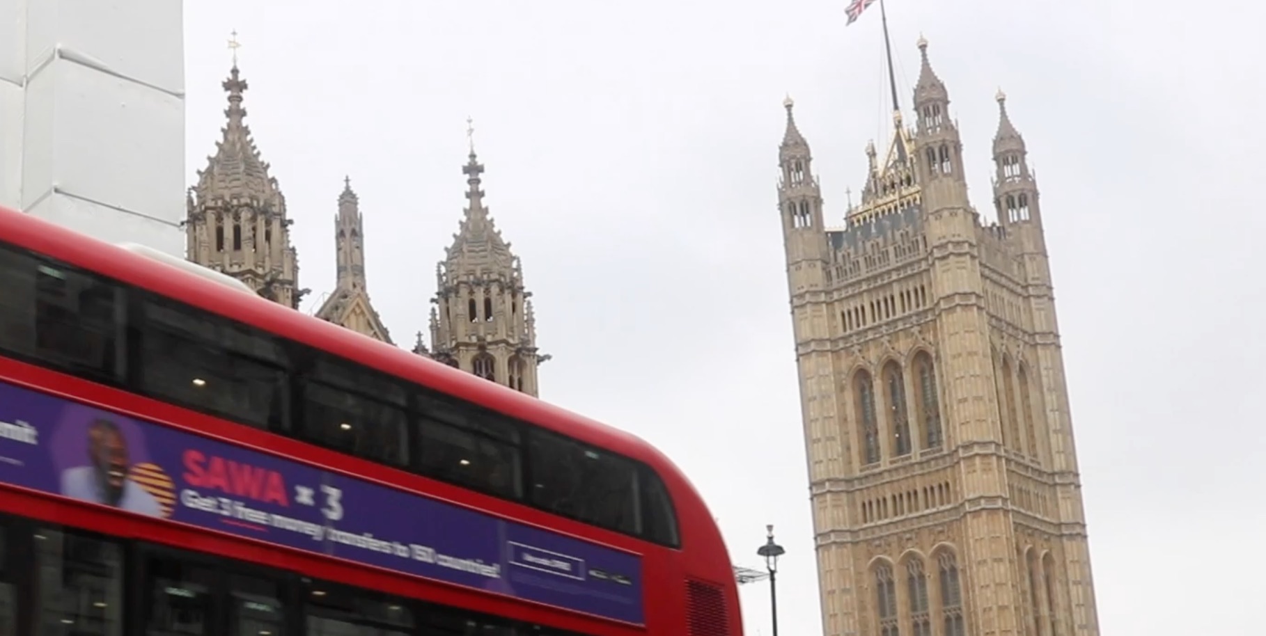A bus goes by Parliament in London as the Brexit debate continues.